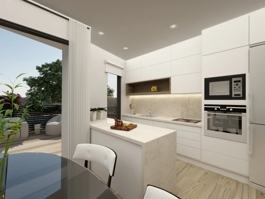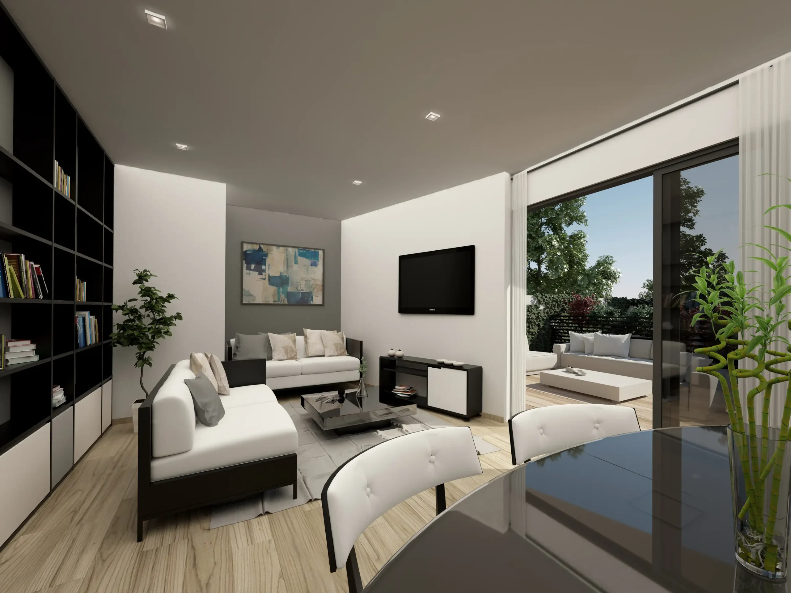 Todas las viviendas se componen de 4 habitaciones con dos baños y terrazas. Disponemos también de un apartamento compuesto por 1 habitación y 1 baño.